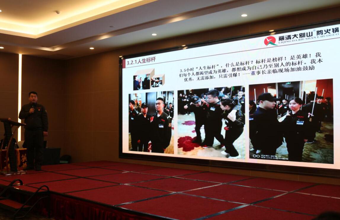 大會最后由集團董事長鮑云清先生做會終演講。鮑總對大會的各個環節進行了一一點評,并宣布為提升店面的整體形象和顧客體驗感,集團正在對部分店面進行升級,將線上、線下產品完美融合,設置體驗區、外賣區、茶飲區等,方便顧客體驗與購買,讓麗清大別山鵝火鍋不只是顧客的就餐場所,更是、閨蜜相聚老友歡聚,親友團聚、商務洽談……的必選場所。