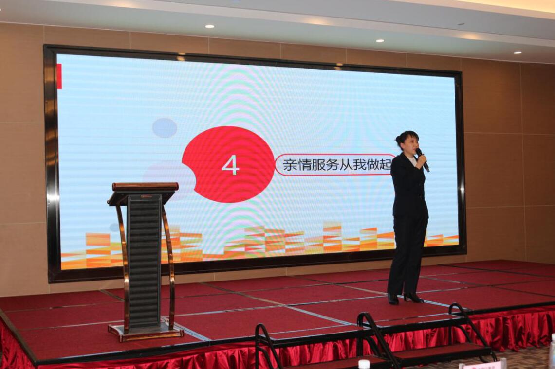 大會的第四部分是由集團人事總監董理女士帶來的“親情服務從我做起”。高效的溝通無論在生活中,還是工作中都尤為重要。而在溝通之前,儀容儀表和職場禮儀更能給對方帶來更直觀的印象,董總通過微信服務、店面美團評分、消費者反饋、服務評價、技能服務、親情服務等六個方面闡述了服務的重要性,并以潛山路店為標桿,要求所有直營店嚴把服務關。